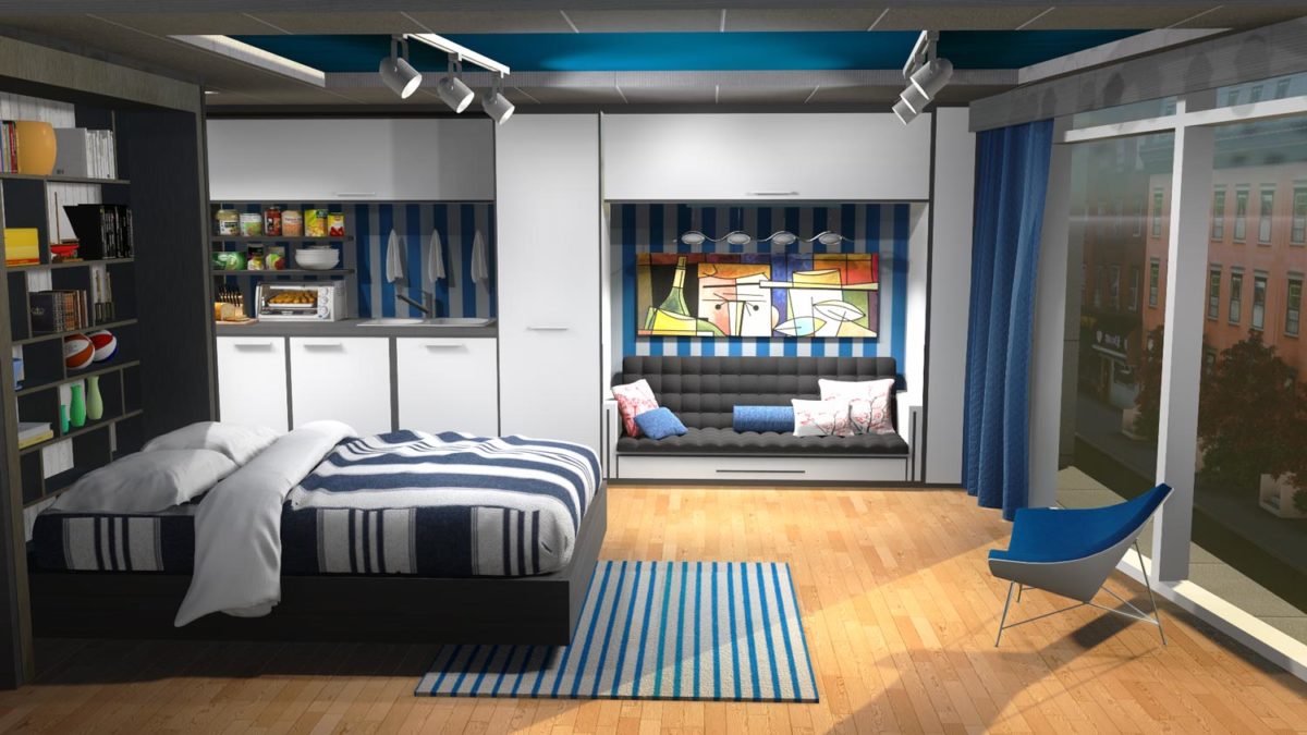 Given the escalating cost of New York City real estate and the city’s growing population, living space will undoubtedly continue to be at a premium for the foreseeable future. As a potential solution to the city’s affordable housing shortage, two of my New York City College of Technology classmates, Gareth Enahoro and Heyddi Abreu, and I developed a concept for small-scale apartment living. Our design, which we call Mini for 2, provides comfort, style, flexibility, and privacy while doubling the density of a typical New York City residential building. I’m proud to say that Mini for 2 received an Award of Honor in the Student category at this year’s New York Council of the Society of American Registered Architects (SARA) annual design competition.