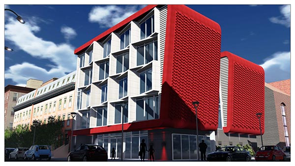 The concept building that would house the apartments has five floors with 31 units. A cafe/restaurant in the basement offers dining options for residents and others in the neighborhood. The building would also have a recreational rooftop terrace and a 24-hour laundry in the basement. Here’s a video representation of the design.