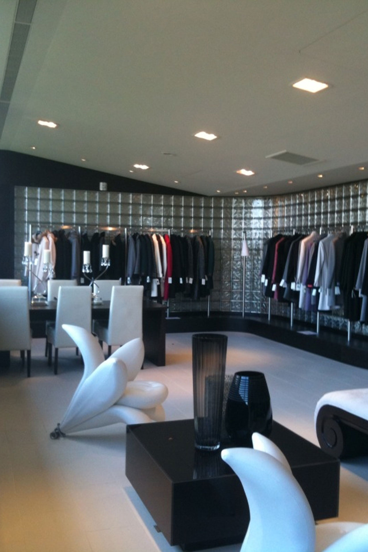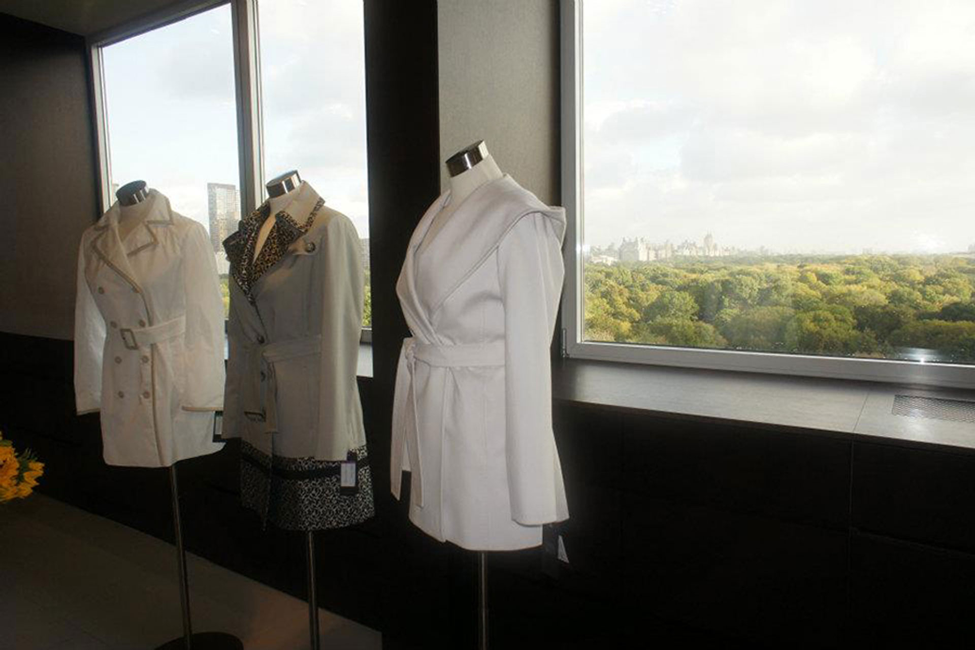 2,200-square-foot office and showroom for luxury outerwear brand in the penthouse at 30 Central Park South in Manhattan.